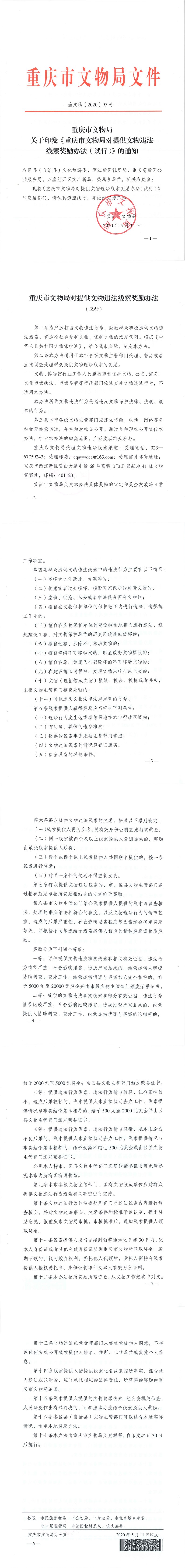 重慶市文物局關于印發(fā)《重慶市文物局對提供文物違法線索獎勵辦法(試行)》的通知
