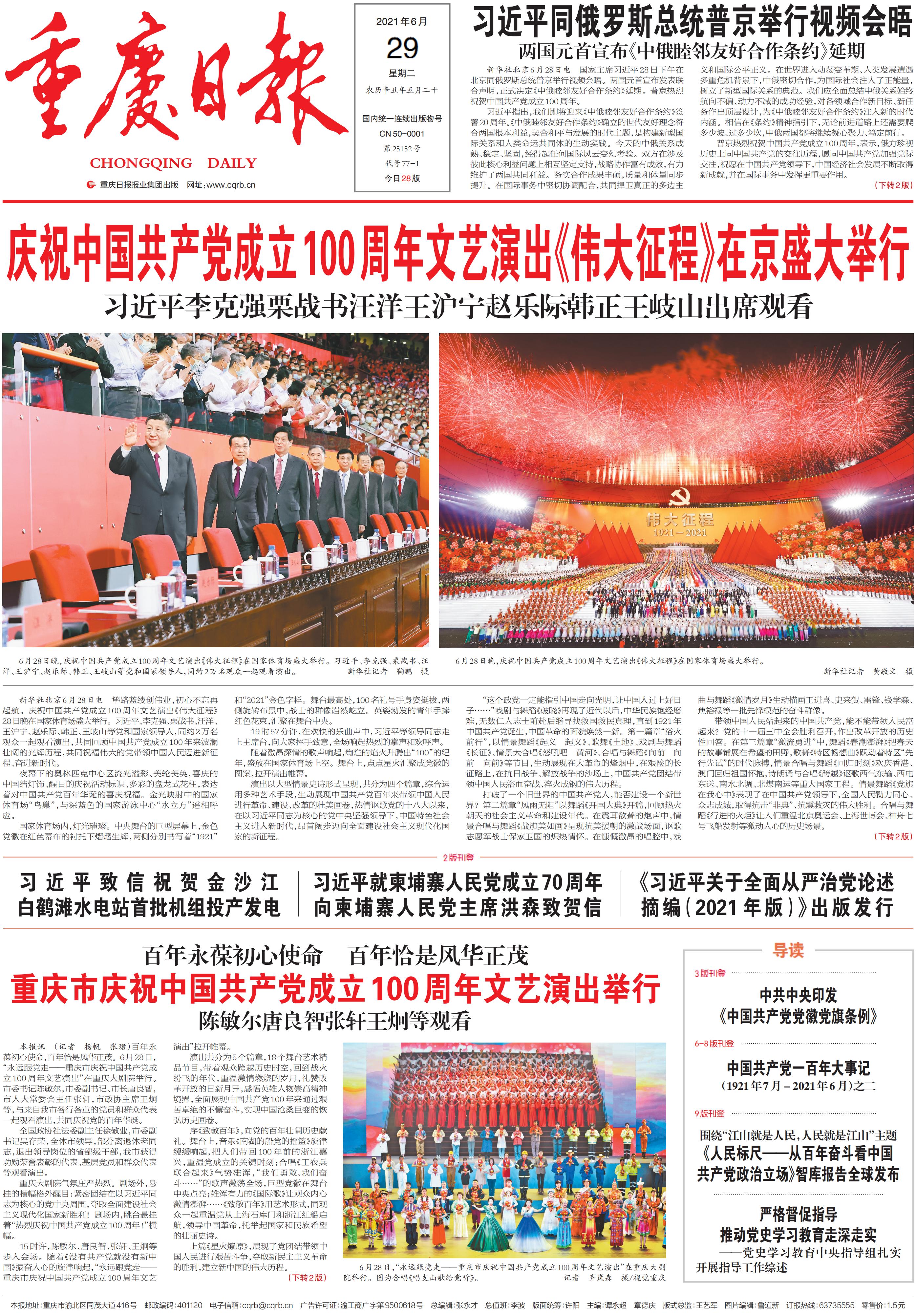 重慶日報全媒體 韓毅 劉一葉 齊嵐森 6月28日,永遠跟黨走——重慶市慶祝中國共產黨成立100周年文藝演出在重慶大劇院上演?!陡蚁?
