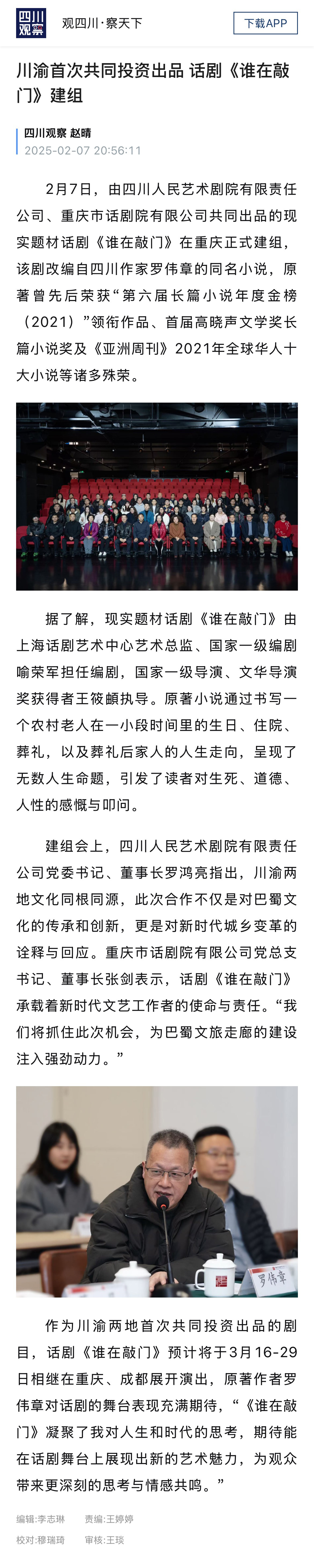 文化中國行|奏響川渝城鄉(xiāng)變革樂章,話劇《誰在敲門》首演發(fā)布會(huì)在渝舉行新重慶-重慶日?qǐng)?bào)原創(chuàng)記者 周雙雙03-16 17:42 3月16日,川